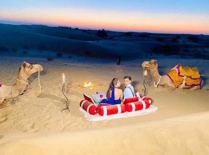 Create unforgettable memories with the best camps in Jaisalmer, and enjoy a candlelight dinner under the starry night sky in the Thar desert. Specially arranged for you and your loved one. Imagine a gentle desert breeze at night and traditional Rajasthani music in the background with a romantic atmosphere. During the dinner, you can enjoy both local as well as international cuisines. For your every romantic celebration, we are here to set the mood. With our luxury desert camps in Jaisalmer, you can experience a romantic getaway.